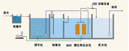 (3)調節池出水用提升泵提升到缺氧池,同時經過曝氣硝化過的污水回流進行反硝化脫氮。出水進入接觸氧化池,通過曝氣進行好氧生化處理同時進行硝化反應。